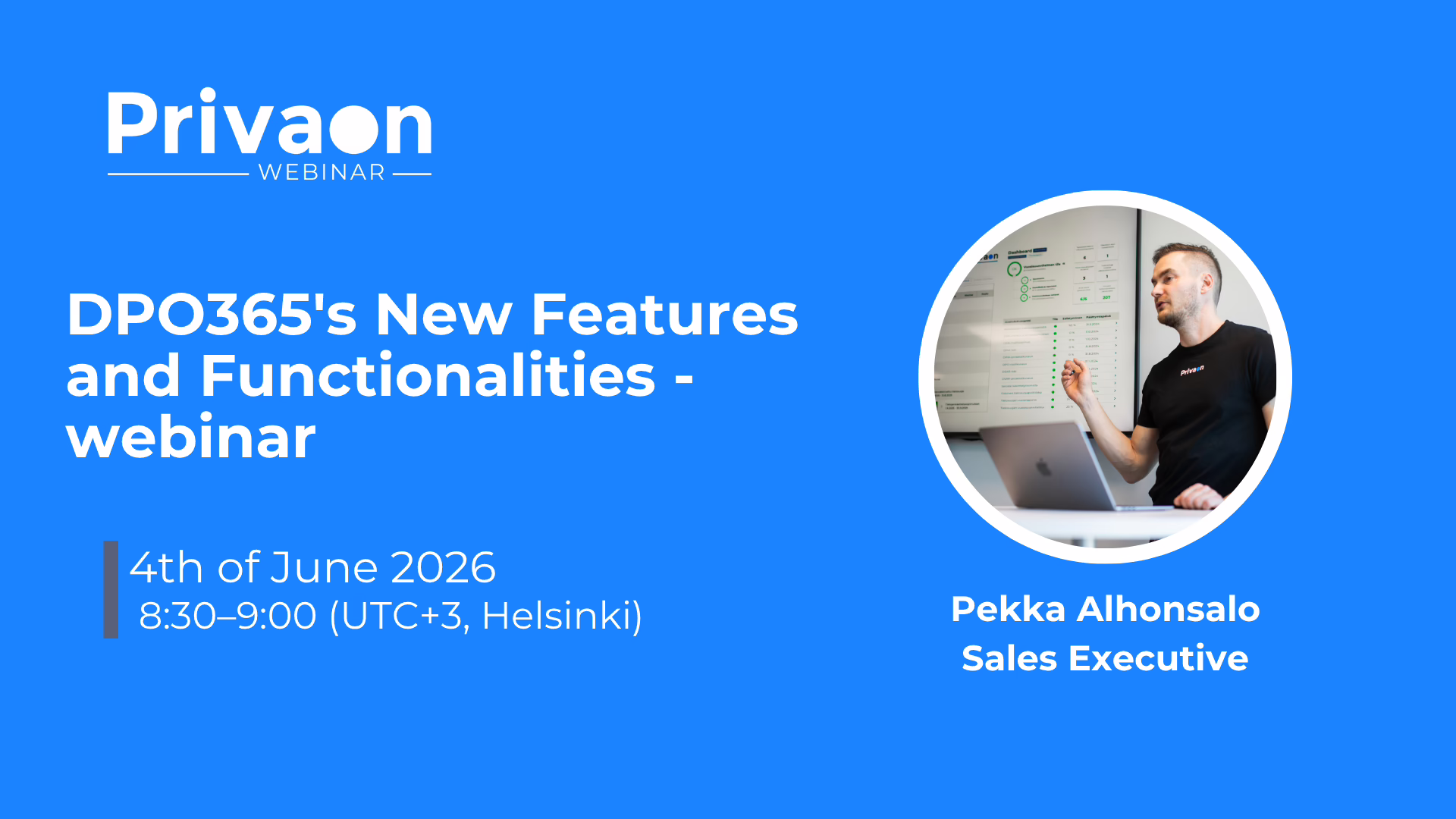 Welcome to Privaon's “AI Compliance” webinar on Thursday, June 18th, 2026 at 8:30-9:00 GMT (UTC +1, Dublin time)! This webinar is suitable for privacy and compliance professionals, DPOs, and others involved in […]