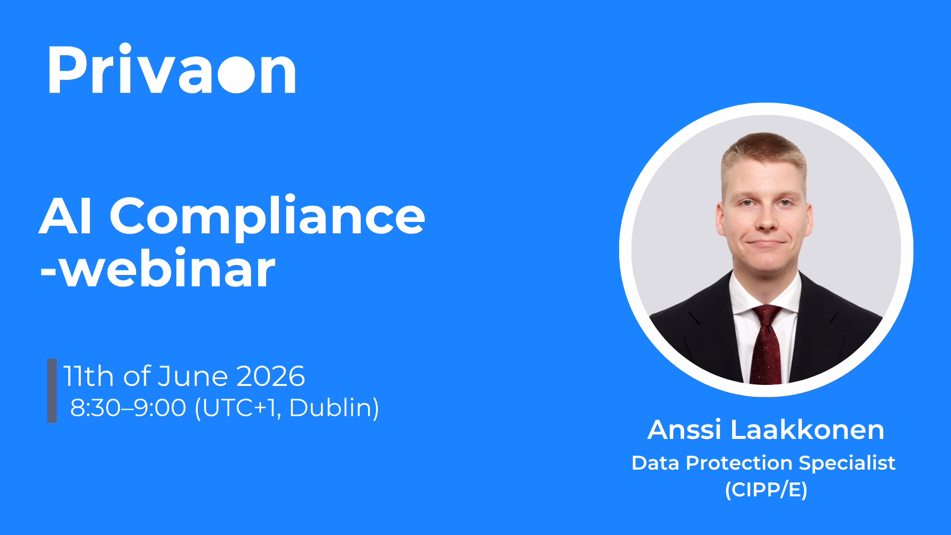 Welcome to Privaon’s “Key Compliance Documentation for Data Protection and AI” webinar on Thursday, May 21st, 2026 at 8:30-9:00 GMT (UTC +1, Dublin time)! Key compliance documentation is a central element of data protection and AI compliance. As regulatory requirements tighten and oversight increases, organisations must be able not only to comply, but also to […]